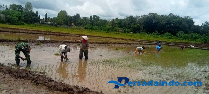 NTT-Sumba Timur.Babinsa Koramil 01/Lewa Kodim 1601/Sumba Timur, Serma Andreas Tapenu, turut mendampingi para petani Desa Kambata Wundut dalam kegiatan penanaman padi sebagai bagian dari upaya mendukung ketahanan pangan di Desa Kambata Wundut, Kecamatan Lewa,Kabupaten Sumba Timur.Rabu (26/11/2025).