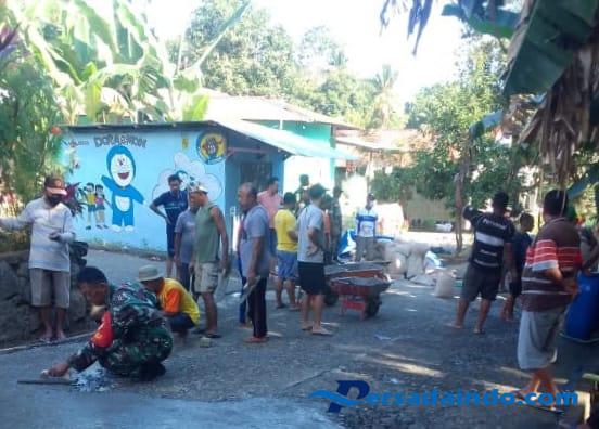 Kegiatan dimulai pukul 10.30 Wita dan berlangsung hingga selesai dengan melibatkan sedikitnya 25 orang warga. Fokus kegiatan adalah pengerjaan rabat jalan serta pembersihan area lingkungan sekitar desa yang menjadi bagian dari wilayah binaan Babinsa.