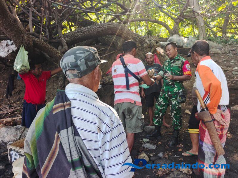 Ende, Serka Nasrudin Latip, Babinsa Kecamatan Ndona dari Koramil 1602-01/Ende, melakukan kegiatan komunikasi sosial (Komsos), monitoring, dan pengamanan wilayah (Pamwil) di pinggir Pantai Mbu’u Nanganesa, Kecamatan Ndona.