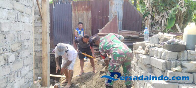 Kegiatan yang dimulai pukul 10.15 Wita tersebut melibatkan sekitar 10 orang masyarakat setempat. Babinsa turun langsung bergotong royong membantu pembangunan rumah warga sebagai wujud nyata kepedulian TNI terhadap masyarakat.