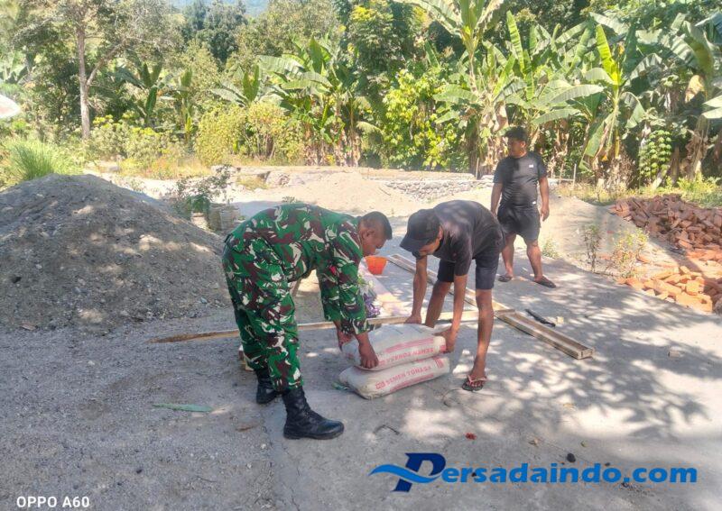 Ende, Kopda Ramdani G Utomo, Babinsa Koramil 1602-04/Maurole, melaksanakan kegiatan karya bakti membantu masyarakat membangun rumah layak huni di Desa Otogedu, Kecamatan Maurole, Kabupaten Ende, Rabu pagi (8/10/2025).