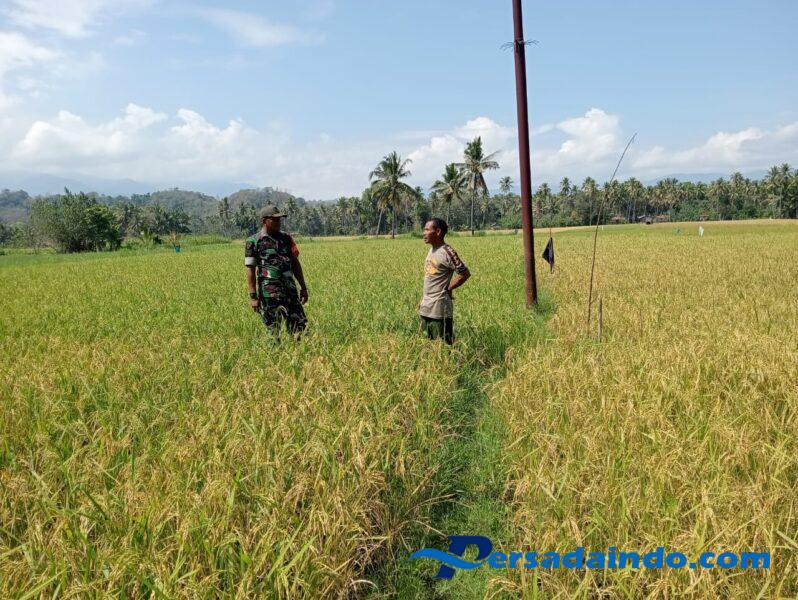 Maurole, Babinsa Koramil 1602-04/Maurole, Sertu Donatus Kiri, melaksanakan kegiatan Han Pangan dengan memantau kondisi padi bersama kelompok tani Utu Kita di Desa Woloau, Kecamatan Maurole, Kabupaten Ende, pada Jumat pagi (19/9).