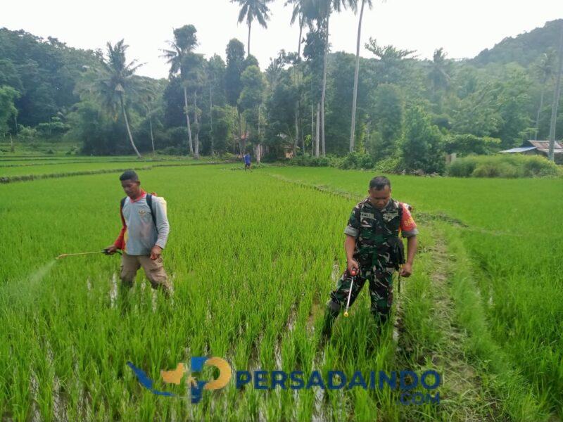 Serka Ramli bersama warga melakukan penyemprotan secara bergotong royong di lahan persawahan milik warga. Selain membantu tenaga, Babinsa juga memberikan motivasi kepada para petani agar terus semangat dalam mengelola lahan pertanian sebagai sumber utama penghidupan masyarakat desa.
