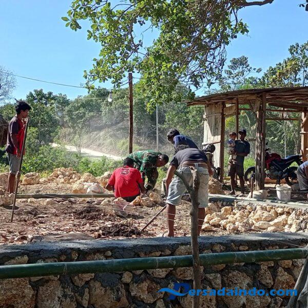 Dalam kegiatan tersebut, Sertu Yehuda ikut bergotong royong bersama warga mengangkat material bangunan, menyusun batu, serta membantu pekerjaan lainnya demi mempercepat proses pembangunan.