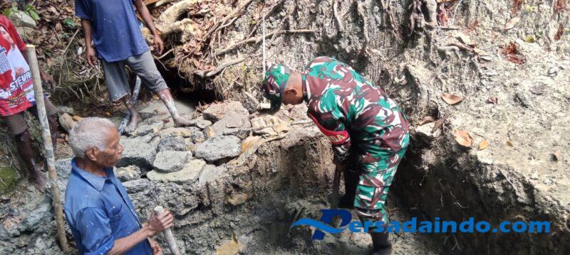 TTS — Wujud kepedulian TNI terhadap kesulitan warga kembali ditunjukkan oleh Babinsa Koramil 1621/TTS Iketut Murtisedanayasa, yang turut serta dalam kegiatan gotong royong menggali sumur tanah secara Manual di Desa Oeue Kecamatan Kuatnana, Kab. TTS Selasa (26/08/2025).