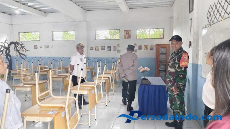 Persadaindo.com TTS _ Menjelang pelaksanaan ujian Nasional di SMK Kencana Sakti Oenali Kecamatan Amanuban Barat, Kabupaten TTS anggota Koramil 1621-01 Kota So’e Praka Gemin Lolos Bersama Bhabinkamtibmas Polres TTS dan Bapak Camat mengecek kesiapan Ruangan Kelas Sebelum Ujian Nasional Kamis (10/04/2025)
