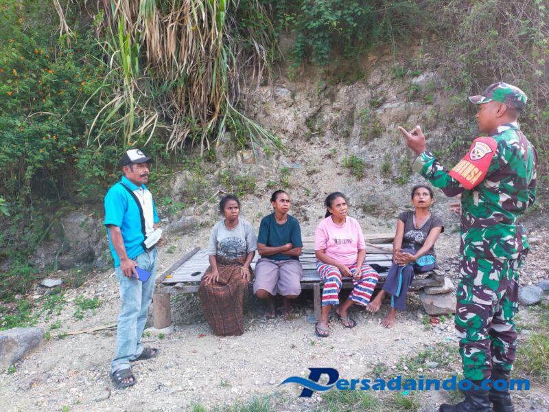 Ende, Ndori – Babinsa Koramil 1602-02/Wolowaru Kopda Melkyanus Lebok Da Cruz melaksanakan kegiatan komunikasi sosial (Komsos) dan pengamanan wilayah di Desa Wonda, Kecamatan Ndori, Kabupaten Ende. Kegiatan ini berlangsung pada Sabtu pagi pukul 09.00 WITA dan dihadiri oleh sejumlah ibu-ibu warga desa setempat.