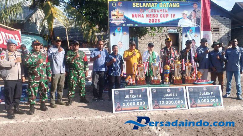 NTT-ALOR_, Semarakkan Olah Raga, Koptu Abdul Syukur Kasim Babinsa Koramil 01/Kalabahi Kodim 1622/Alor hadiri sekaligus pengamanan Penutupan Open Turnamen Sepak Bola Piala Nuha Nebo Cup ke IV, yang bertempat di Lapangan Mini Desa Pulau Buaya, Kecamatan Alor Barat Laut, Kabupaten Alor. Kamis (03/07/2025).