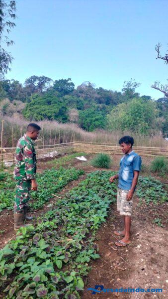 NTT-Sumba Timur. Babinsa Koramil 01/Lewa, Kodim 1601/Sumba Timur, Pratu Betanius Wiliam, melaksanakan kegiatan Komunikasi Sosial (Komsos) bersama petani sayur di Desa Kambuhapang, Kecamatan Lewa, Kabupaten Sumba Timur, pada Senin (22/09/2025).