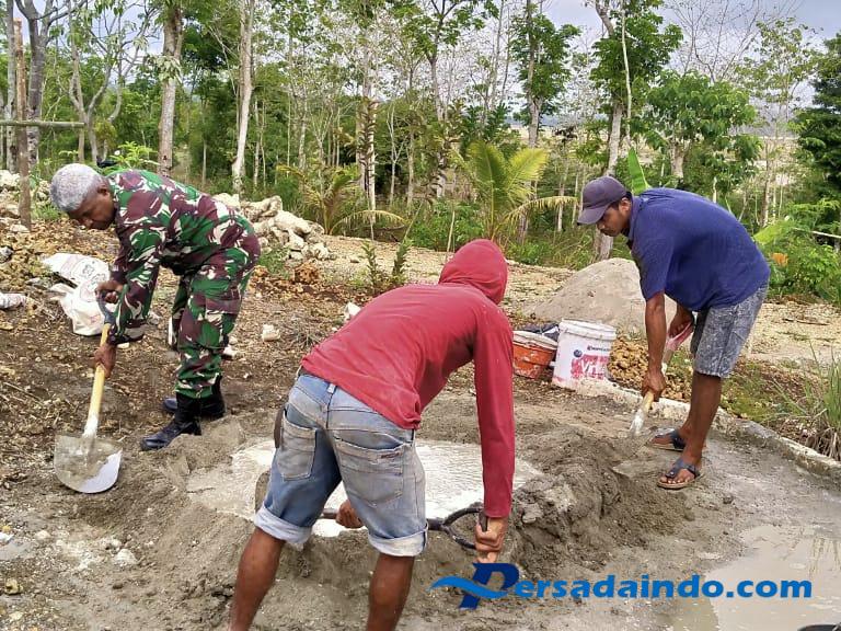 • Babinsa Koramil 01/Loli Bantu Warga Bangun Pondasi Rumah