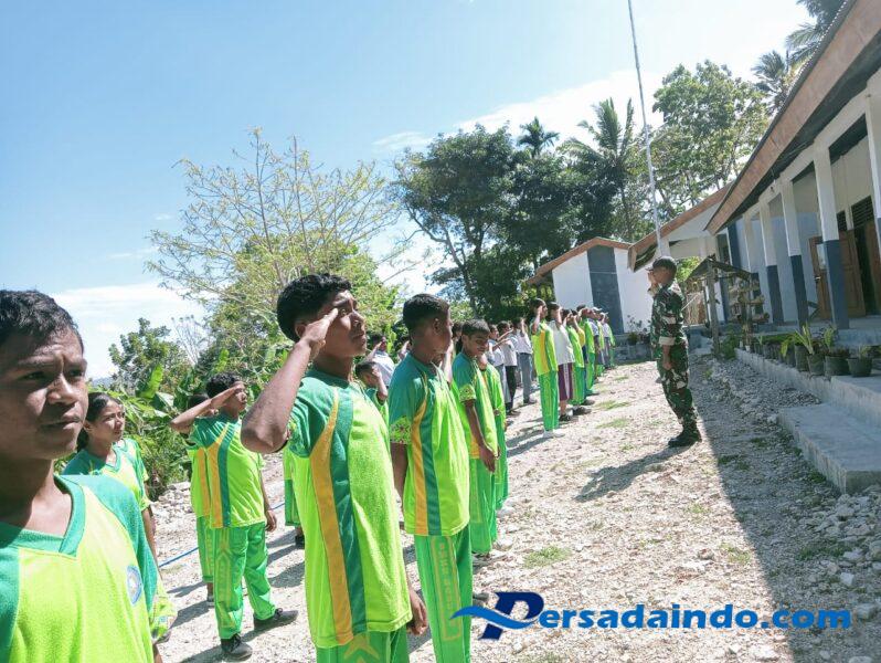 TTS – Babinsa Koramil 02/Abanteng Kodim 1621/TTS Serma Okri Bano memberikan pelatihan Peraturan Baris Berbaris (PBB) kepada siswa-siswi SMKN Babuin di Desa Babuin Kecamatan Kolbano, Kab. TTS