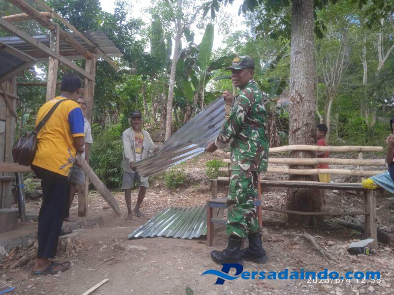 TTS – kemanunggalan TNI bersama Rakyat, Babinsa Koramil 1621-02/Abanteng sertu Stefanus Nakamnanu membantu pemasangan atap rumah milik warga binaan di desa Naileu Kecamatan Kie Kabupaten TTS Jumat (4/07/2025).