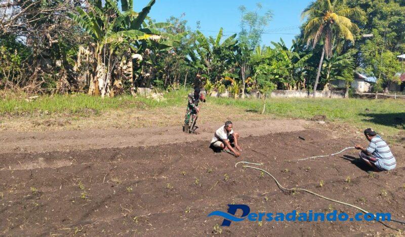 Rote Ndao – Babinsa Koramil 1627-01/Ba’a, Koptu Alis Sinlae, bersama para petani Desa Kuli dan D...