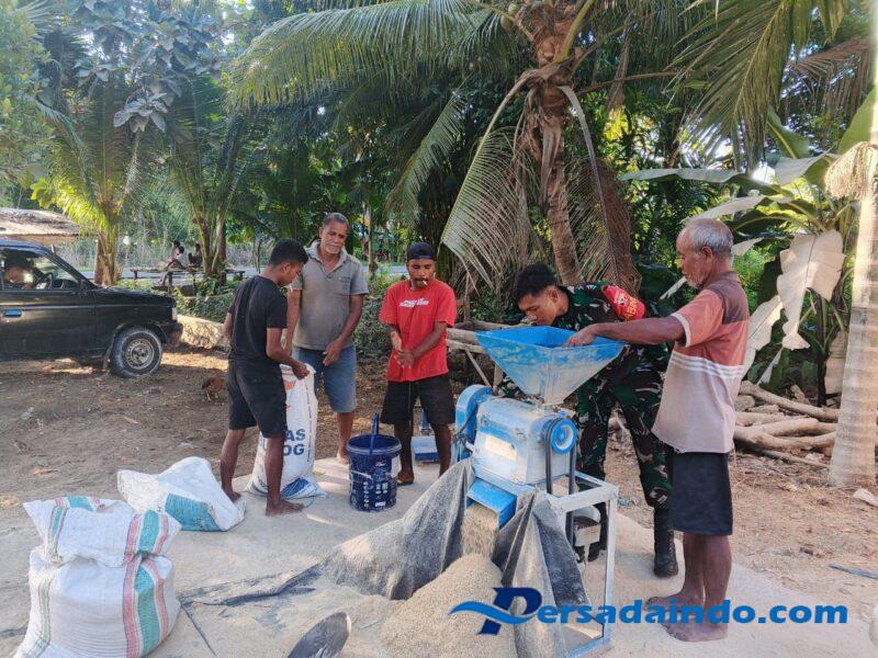 NTT-Sumba Timur,Sebagai wujud kepedulian terhadap kesejahteraan masyarakat desa binaannya, Babinsa Koramil 02/Rindi Umalulu, Kodim 1601/Sumba Timur, Pratu Edwan Yewang, turut serta membantu warga dalam proses penggilingan padi di Desa Watuhadang,Kecamatan Umalulu, Kabupaten Sumba Timur, Rabu (18/06/2025).