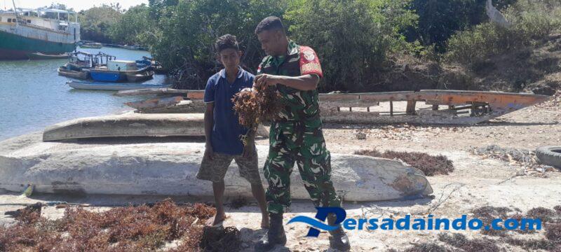 • Babinsa Koramil 03/Batutua Dampingi Petani Rumput Laut di Desa Binaan