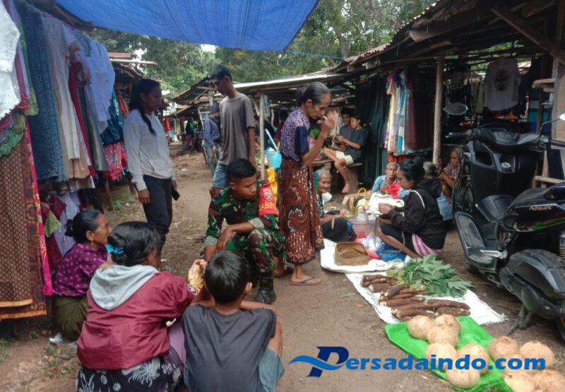 NTT-Sumba Timur, Babinsa Koramil 03/Pahunga Lodu, Kodim 1601/Sumba Timur, Pratu Antonius Ndima, melaksanakan pemantauan dan pengamanan kegiatan pasar mingguan yang berlangsung di Desa Kaliuda, Kecamatan Pahunga Lodu, Kabupaten Sumba Timur, pada Minggu (06/07/2025).
