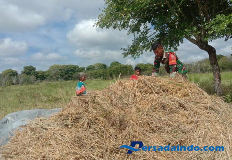 Dalam kegiatan tersebut, Pratu Anton Ndima tidak hanya memastikan kondisi keamanan dan ketertiban wilayah, tetapi juga turun langsung membantu masyarakat yang sedang melakukan proses panen padi. Ia turut serta dalam mengumpulkan padi yang telah dipanen untuk kemudian dirontokkan menggunakan mesin perontok padi.