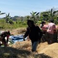 Kegiatan ini berupa membantu warga menjemur padi hasil panen dari sawah, sebagai bagian dari proses pascapanen yang krusial untuk menjaga kualitas gabah sebelum masuk ke tahap penggilingan.