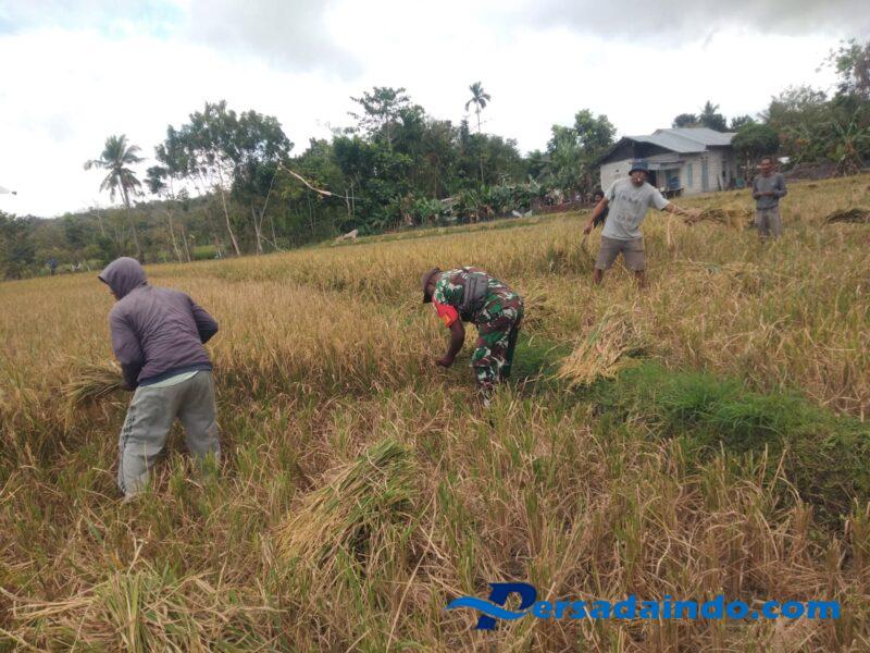 Pendampingan terhadap petani terus dilakukan oleh Babinsa guna meningkatkan hasil pertanian sehingga terciptanya ketahanan pangan. Dalam kesempatan ini Sertu Yohan Saekoko menyampaikan, kegiatan pendampingan kepada kelompok tani merupakan kegiatan rutin yang kami laksanakan, untuk membantu memanen padi warganya bersama kelompok tani.
