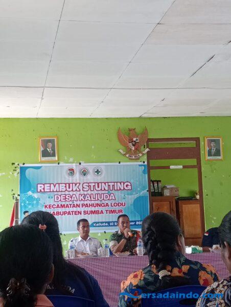 NTT – Sumba Timur. Babinsa Koramil 03/Pahunga Lodu jajaran Kodim 1601/Sumba Timur, Serka Daniel Umbu Ndawa menghadiri kegiatan Rapat Koordinasi/Rembuk Rumah Desa Sehat (RDS) dan Rembuk Stunting Desa Kaliuda Tahun 2025 yang dilaksanakan di Aula Kantor Desa Kaliuda, Kecamatan Pahunga Lodu, Kabupaten Sumba Timur, Kamis (11/09/2025).