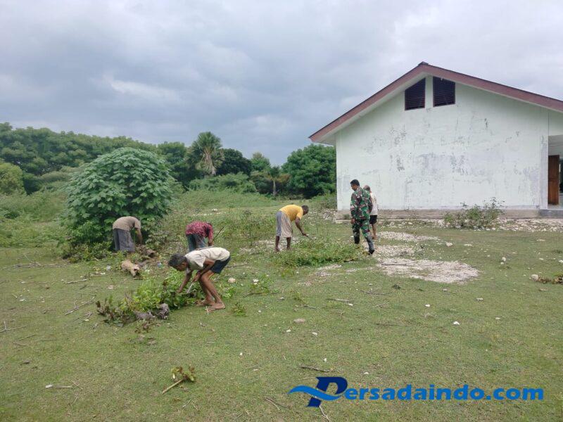 • Babinsa Koramil 04/Amanatun Utara Serka Amos Nau Bersama Warga Binaan Gotong Royong Bersihkan Halaman Sekolah SMA Kristen Boking