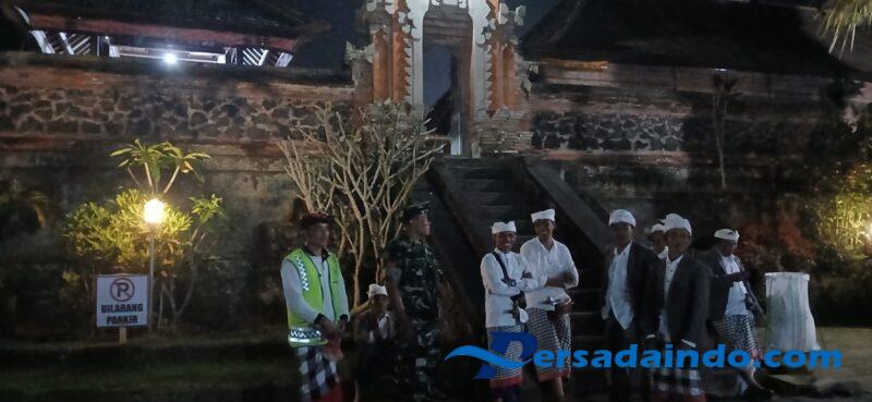 Bangli – Sebagai bentuk kebersamaan dan kepedulian terhadap warga binaan, Babinsa Koramil 04/Kintamani Kodim 1626/Bangli Kopka Nyoman Purnawirawan bersinergi dengan pecalang melaksanakan kegiatan pemantauan sekaligus pengamanan piodalan/pujawali Nebasin. Senin (02/06/25)