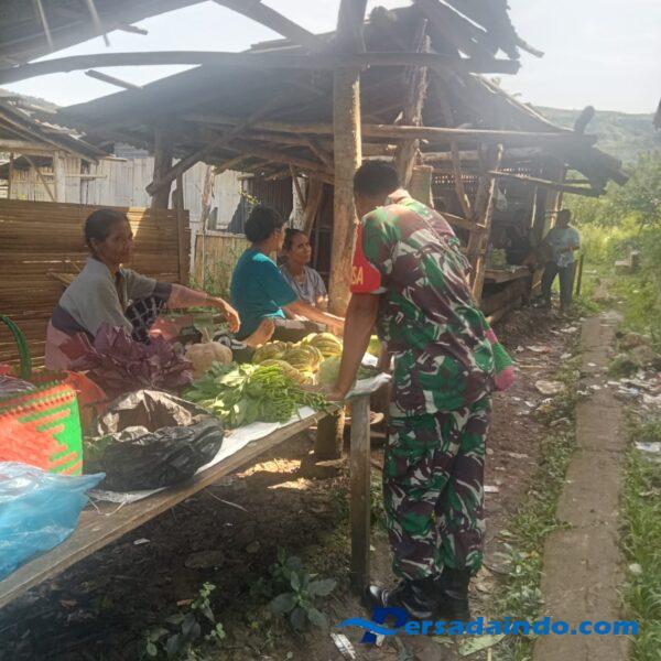 NTT- Sumba Timur, Sertu M. Jaini Babinsa Koramil 04/Tabundung,Kodim 1601/Sumba Timur melaksanakan pengecekan harga dan persediaan sembako yang ada di pasar Tradisional Praikomba yang terletak di Desa Praikomba, Kecamatan Tabundung, Kabupaten Sumba Timur, Sabtu (21/06/2025)