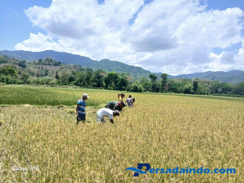 NTT – Sumba Timur. Babinsa Koramil 04/Tabundung Kodim 1601/Sumba Timur, Pratu Denis Nderu Peta, turut membantu para petani melaksanakan panen padi di Desa Praingkareha, Kecamatan Tabundung, Kabupaten Sumba Timur, Sabtu (06/12/2025).