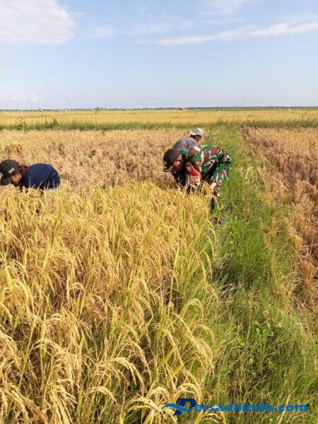 Kegiatan tersebut diakui Babinsa Serda Basuki Rahmat dalam rangka mendukung Ketahanan Pangan nasional Sehingga dengan semangat ikut serta terjun langsung ke sawah untuk membantu para petani desa binaannya saat memanen padi agar terwujud kemanunggalan TNI dengan Rakyat.