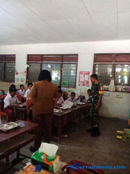 NTT- Sumba Timur, Dalam rangka mendukung program Pemerintah Babinsa Koramil 05/ Waingapu, Kodim 1601/Sumba Timur, Serka Wens Sogeh melaksanakan kegiatan Monitoring pendistribusian Makan Bergizi Gratis (MBG) di Sekolah Dasar Katolik Andaluri, Jalan Umbu Tipuk Marisi, Kelurahan Matawai, Kecamatan Kota Waingapu, Kabupaten Sumba Timur, Senin (02/06/2025)