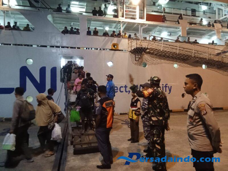 Selama kegiatan, petugas memantau proses bongkar muat barang dan kedatangan penumpang dengan seksama demi memastikan keamanan dan ketertiban di pelabuhan.