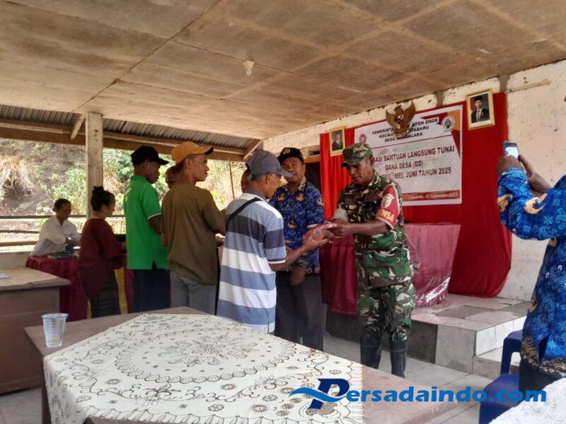 Ende, Babinsa Koramil 1602-04/Maurole, Sertu Denis Fernandes dan Kopda Muhamad Samin, menghadiri kegiatan penyaluran Bantuan Langsung Tunai (BLT) Kemiskinan Ekstrem Tahap II di Desa Rangalaka, Kecamatan Kota Baru, Kabupaten Ende. Kegiatan ini dilaksanakan pada hari Rabu, 17 September 2025, mulai pukul 10.46 WITA hingga selesai.