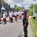 Bangli – Dalam rangka menjaga keamanan dan kelancaran jalannya upacara keagamaan, Babinsa Desa Belancan Koramil 1626-04/Kintamani, Kopda I Mad...