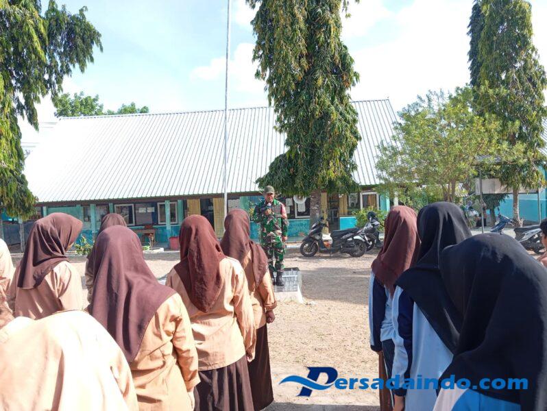 Sumbawa, NTB — Babinsa Desa Sepayung, Sertu Nasrullah, anggota Koramil 1607-02/Empang, menghadiri undangan sebagai pemateri dalam kegiatan pelatihan baris-berbaris dan tata cara upacara bendera bagi siswa-siswi SMPN 02 Plampang. Kegiatan ini berlangsung di lapangan sekolah setempat, Desa Sepayung, Kecamatan Plampang, Kabupaten Sumbawa, Sabtu (18/10/2025).