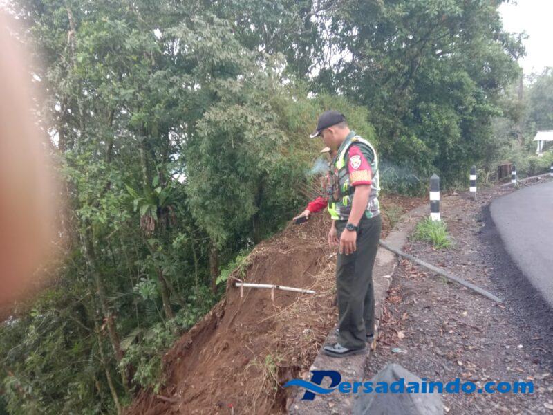 Menyikapi kondisi tersebut, Babinsa bersama Perbekel Desa dan warga setempat bergerak cepat melakukan pengecekan serta memasang tali pembatas di sekitar titik longsor untuk menghindari potensi kecelakaan bagi para pengguna jalan.