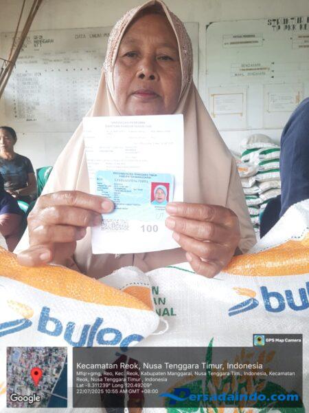 Salah satu penerima bantuan, Ibu Maria Deki, warga RT 02/RW 01 Kelurahan Reo, menyampaikan rasa syukur atas bantuan yang diterimanya.
