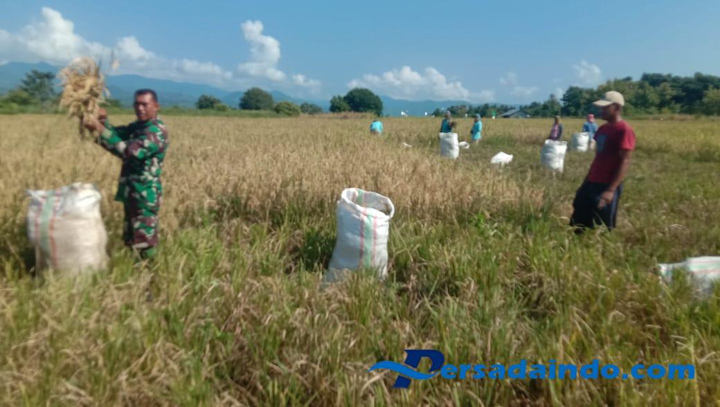 • Babinsa Koramil 1612-06/Lembor Bantu Petani Panen Padi di Desa Siru