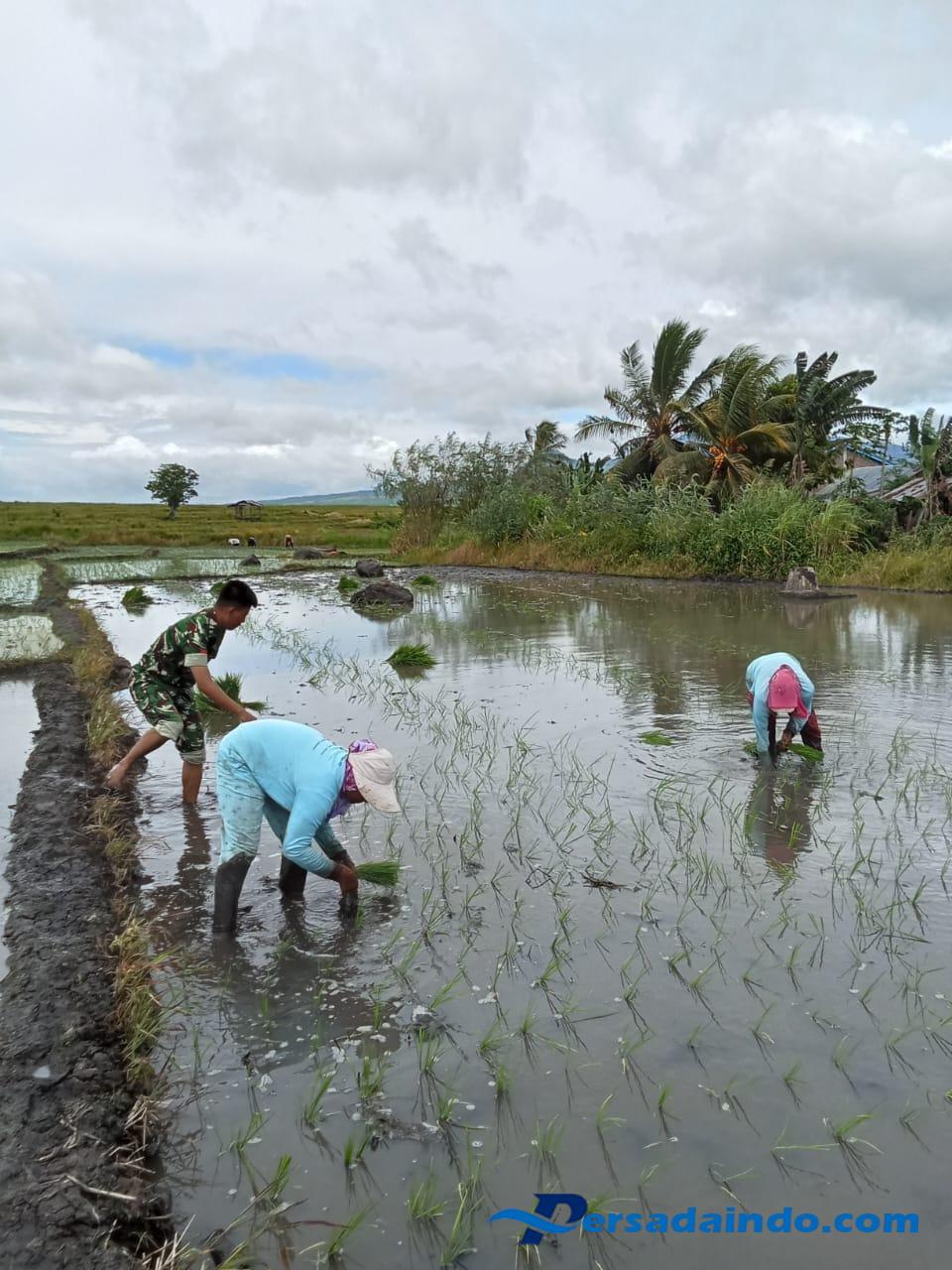 • Babinsa Koramil 1612-06/Lembor Bantu Petani Tanam Bibit Padi di Lembor