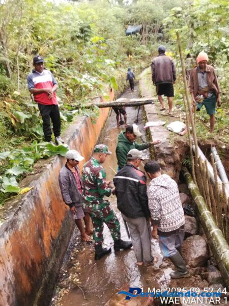 Satarmese, 21 Mei 2025 – Dalam upaya mendukung ketahanan pangan dan mempererat hubungan antara TNI dan masyarakat, Babinsa Koramil 1612-07/Satar Mese, Pratu Alexius Resa, turut ambil bagian dalam kegiatan gotong royong perbaikan saluran irigasi Wae Mantar 1 yang berlokasi di Nampong, Desa Umung, Kecamatan Satarmese, Kabupaten Manggarai.