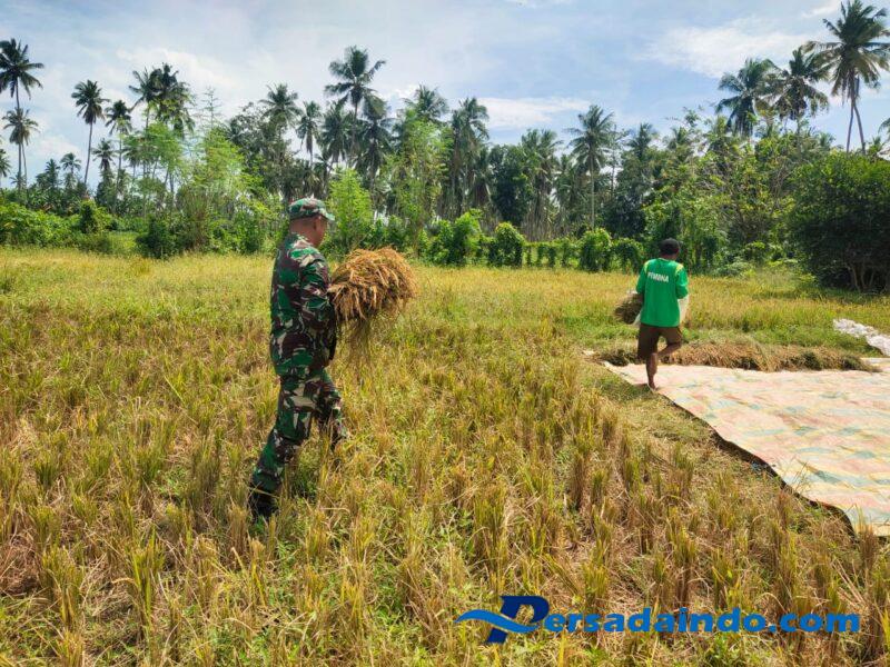 • Babinsa Koramil 1612-08/Macang Pacar Bantu Petani Panen Padi di Desa Bari