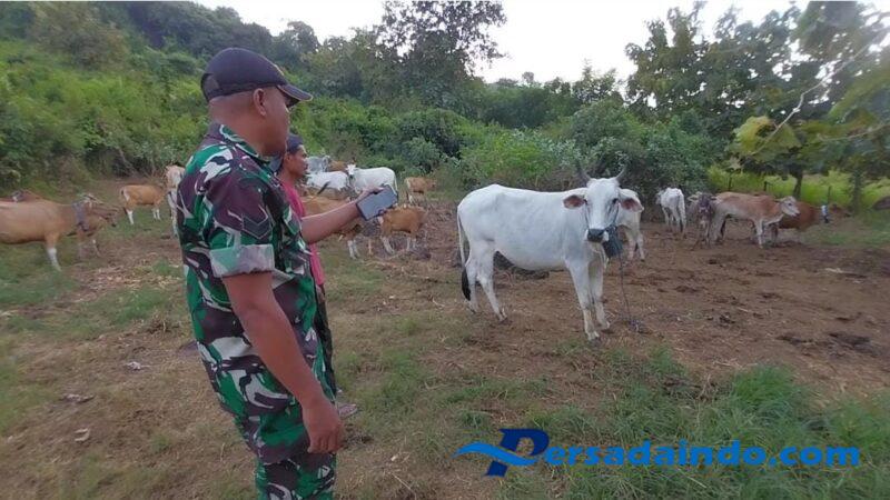 Dompu-NTB. Babinsa Desa Anamina, Sertu Budiman dari Koramil 1614-06/Manggelewa, melaksanakan pendampingan terhadap petugas lapangan peternakan dalam kegiatan pemberian suntikan vitamin bagi ternak sapi milik warga di Desa Anamina, Kecamatan Manggelewa, Kabupaten Dompu. Senin (26/05/2025).