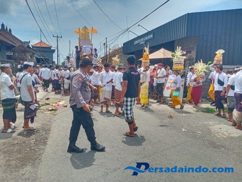 Selama pelaksanaan kegiatan, Babinsa bersama aparat keamanan dan Pecalang bersinergi dalam menjaga kelancaran arus lalu lintas, ketertiban, serta keamanan prosesi dari awal hingga akhir upacara.
