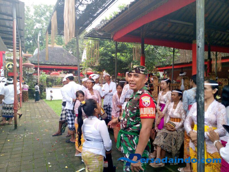 Dalam keterangannya, Serma I Wayan Yasa menyampaikan bahwa pihaknya terus bersinergi dengan Pecalang dan Prajuru Adat untuk memastikan jalannya upacara tetap aman, tertib, dan khidmat.