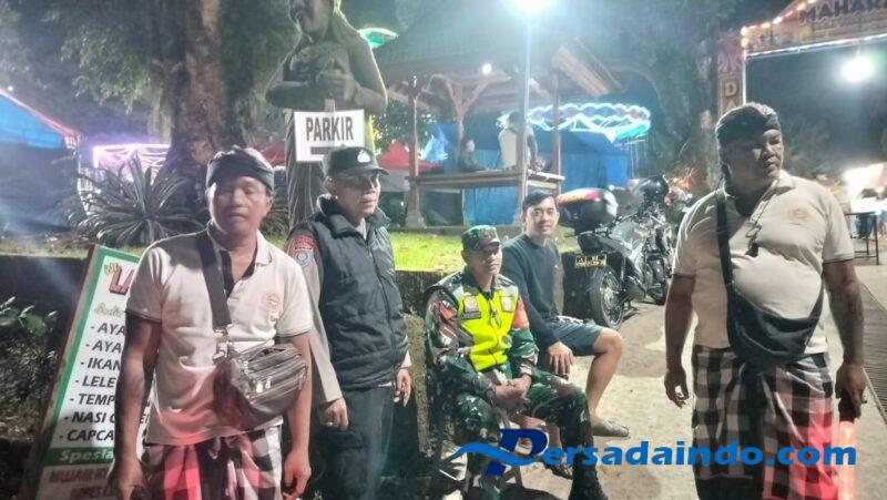 Gianyar – Payangan, Sabtu (13/8/2025) Dalam rangka mendukung terciptanya situasi wilayah yang aman dan kondusif, Babinsa Desa Melinggih Koramil 1616-07/Payangan Koptu Made Aspirawan bersama Bhabinkamtibmas Desa Melinggih Aipda I Wayan Dharma bersinergi dengan Pecalang Desa Adat Melinggih melaksanakan pengamanan kegiatan Pasar Malam Safari Bazaar. Kegiatan tersebut menghadirkan berbagai stand produk UMKM, wahana permainan, pakaian, serta pedagang kaki lima yang berlokasi di areal parkir Pasar Senggol Giri Kesuma, Banjar Melinggih, Desa Melinggih, Kecamatan Payangan.