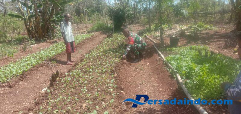 • Babinsa Koramil 1618-02/Miobar Turun ke Kebun, Beri Edukasi Perawatan Tanaman Sawi