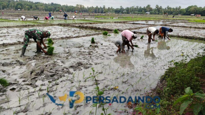 NTT-Kefamenanu., Kamis, 15 Januari 2026, kebersamaan dan semangat gotong royong tampak nyata di hamparan sawah Desa Oepuah Utara, Kecamatan Biboki Moenleu, Kabupaten TTU. Babinsa Desa Oepuah Utara, Sertu Cosme Cortereal, Koramil 1618-06/Bian, turun langsung ke sawah bersama warga binaannya untuk melaksanakan penanaman padi secara bersama sama.