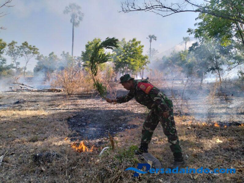 KARANGASEM – Babinsa Desa Baturinggit, Koramil 1623-08/Kubu Pelda I Gede Agus Wirya membantu proses pemadaman kebakaran lahan di Dusun Baturinggit Kelod, Desa Baturinggit, Kec.Kubu, Kab.Karangasem pada Kamis (6/11/2025).