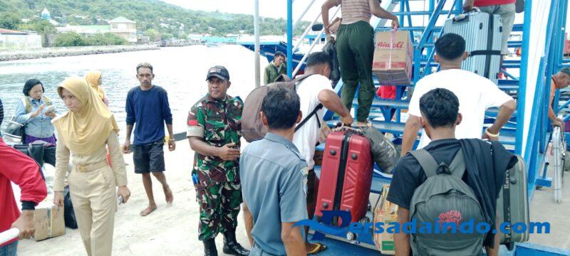 Flotim – Babinsa Koramil 1624-01/Larantuka Praka Burhan melaksanakan pemantauan keamanan dalam kedatangan KM. Lambelu di Pelabuhan Pelni Larantuka, Kabupaten Flotim. Rabu (04/06/2025).