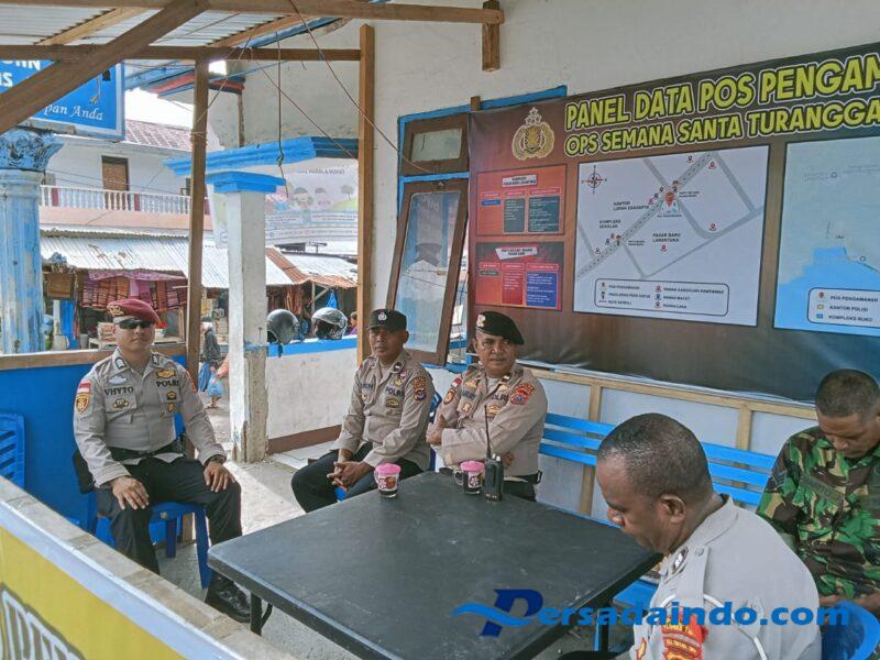 Persadaindo.com – Flotim – Babinsa Koramil 1624-01/Larantuka Serka Marito Januario bersama personil anggota polres flotim melaksanakan pam dalam rangka semana Santa di posko pemantau arus mudik pasar inpres Kelurahan Ekasapta, Kecamatan Larantuka, Kabupaten Flores Timur. Rabu ( 16/04/2025 ).