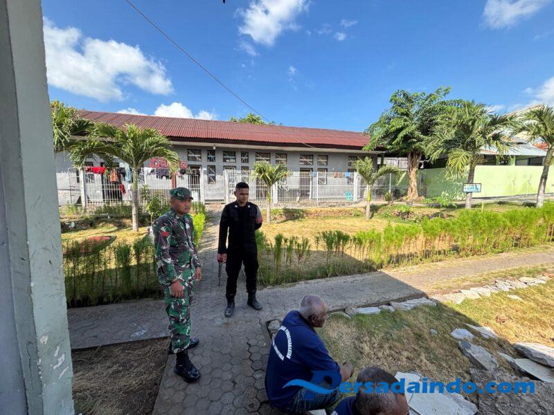 Larantuka, Flotim – Dalam rangka mendukung terciptanya situasi yang aman, tertib, dan kondusif menjelang perayaan HUT Ke-80 Proklamasi Kemerdekaan Republik Indonesia Tahun 2025, Babinsa Koramil 1624-01/Larantuka Praka Pamungkas melaksanakan kegiatan bantuan pengamanan di Rutan Kelas II B Larantuka, Sabtu (16/08/2025).